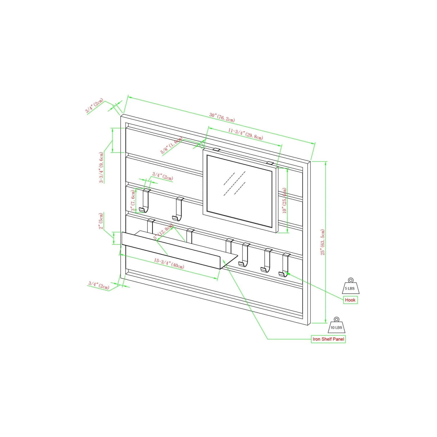 - Shelf supports up to 10 pounds