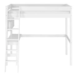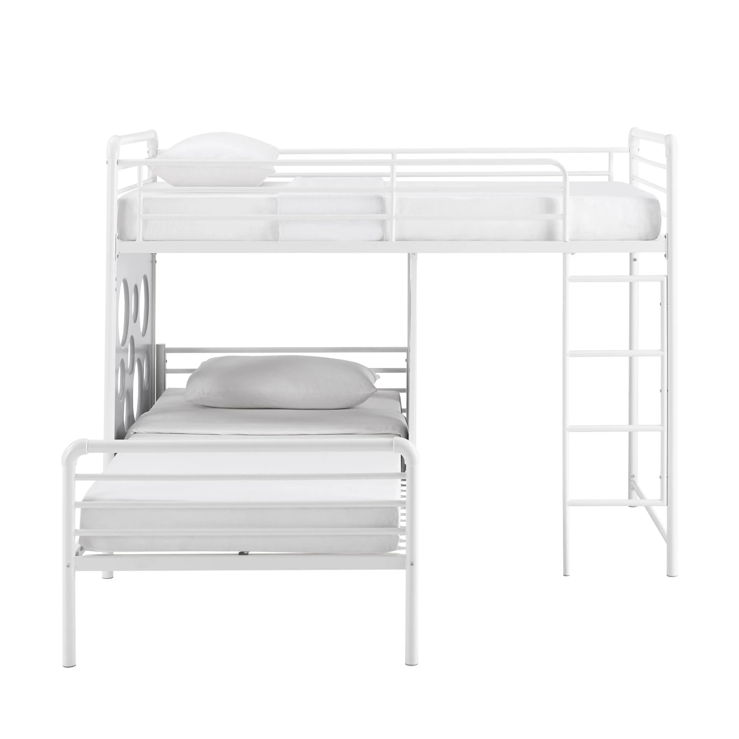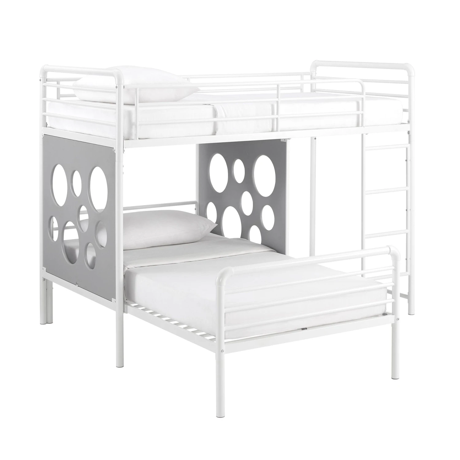 Curate your creative side with the colorful cutouts and unique L-shaped silhouette that this twin bunk offers. Its metal frame lends a unique twist on the classic bunk bed situation with a perpendicular orientation and ultra-modern smooth-gloss, powder-coated metal build and painted panels. Perfect for guest rooms, children’s rooms, and youth hideaways, this bunk will boldly fill any space with an ode to childlike fun.