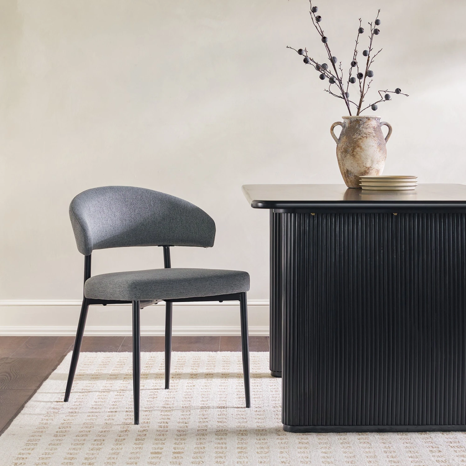 Kick off your shoes, sit back and relax! This set of two curved back upholstered dining chairs makes every occasion a bit more comfortable and stylish. Whether you’re enjoying a meal with your family, catching up with friends, eating a midday snack, or even working from home, you’ll love the comfort and aesthetic design of this modern piece. The rounded back isn’t just visually eye-catching — it’s also ergonomically designed to maximize your comfort while sitting. The tapered legs play up the contrast of the curved back and wide seat, and the overall modern design is the ideal pairing for a mid-century home.