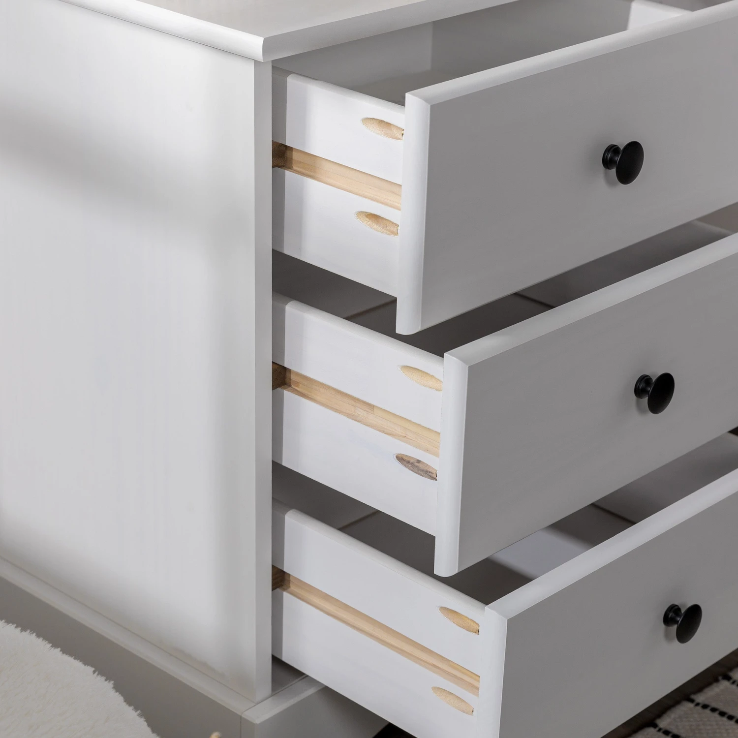 - 3 drawers on wood runners for easy storage