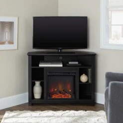 Featuring contemporary comfort and convenience, this console can be assembled with or without the plug-in fireplace insert. Cozy nights in are readily at your fingertips with the fireplace’s two switches that give you control of the heat and faux flames. Two adjustable shelves offer the perfect perch for your media and tech, so you can sit and watch, warm up, and enjoy your favorite new spot in the house.”