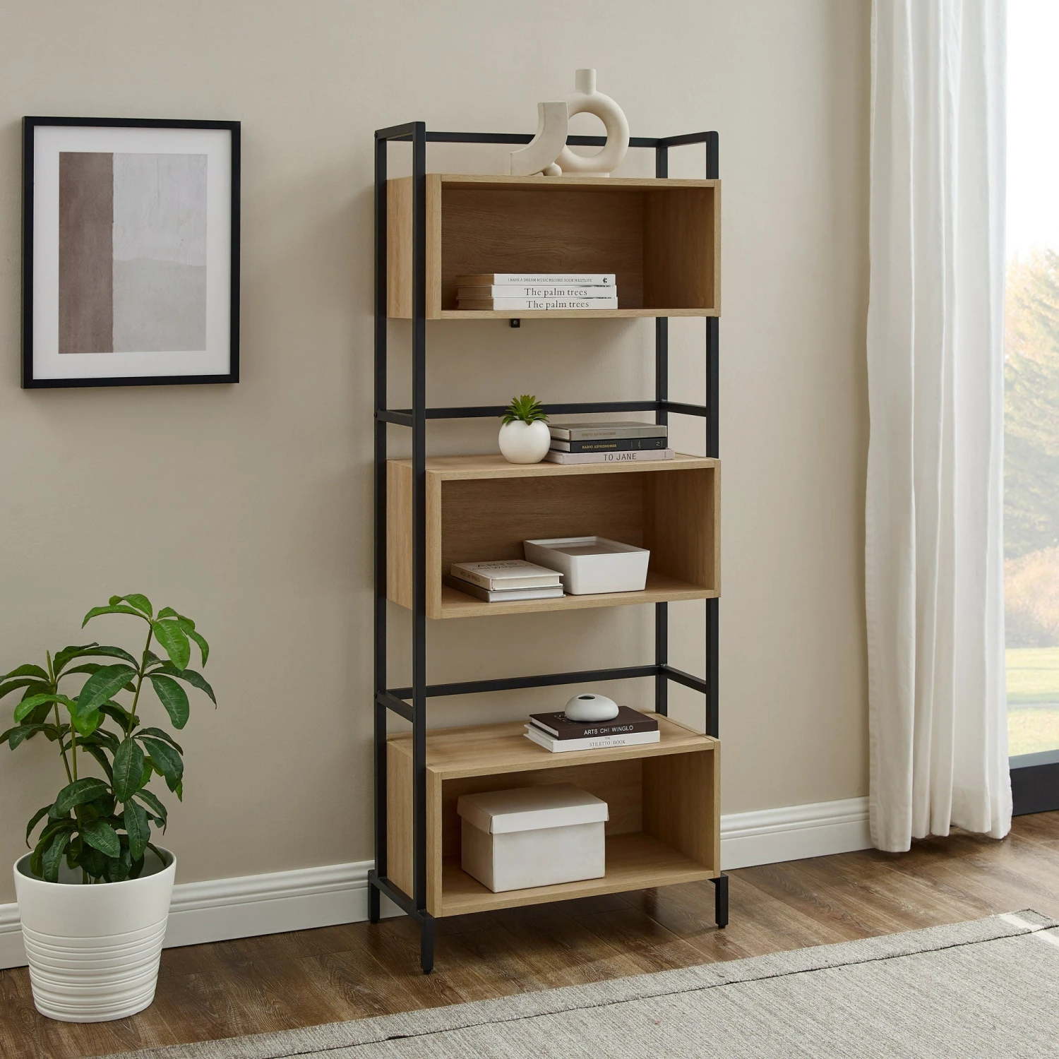 Think outside the box with your next shelving display. A bookshelf fit for every modern minimalist, its three open cubby shelves and their sleek surfaces give you all the space you need to display artwork, thrifted treasures, or your collection of classic flicks. Wall-mounting hardware and adjustable foot levelers allow you to securely debut a customizable display, whether that’s in your home-office hub, entryway, or living room.