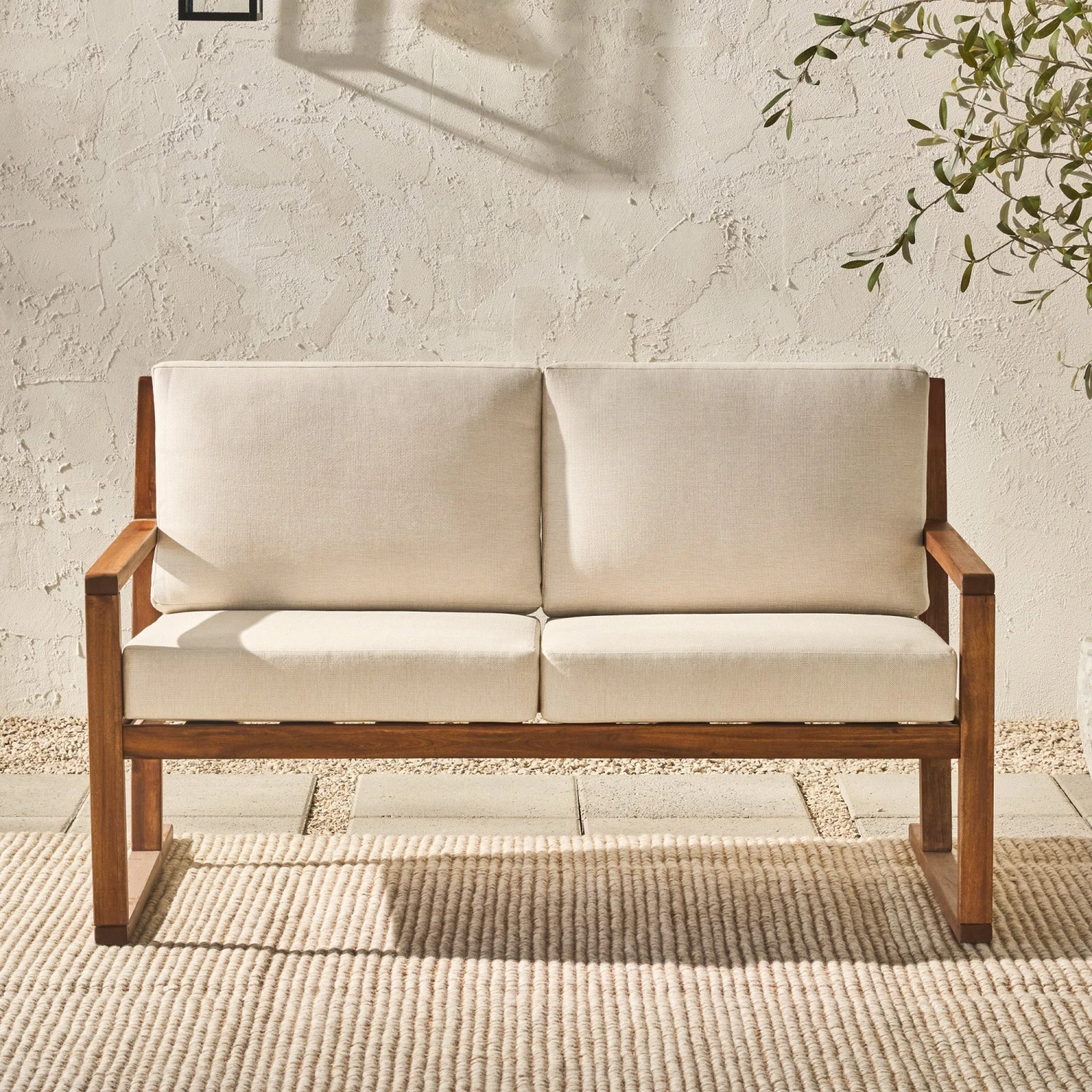 Sleek, simple, and oh-so-stylish, this outdoor loveseat is just what you need to craft a patio paradise. With its upholstered olefin cushions, this chair is the perfect perch to curl up and finish your latest read, or sit and sip or chat with friends. Space for two, a slatted back, and curved edges cater to the luxe look and feel that’ll make your backyard or patio your favorite place to be. Whether it’s displayed inside or out, this lounge chair will effortlessly upgrade your space.