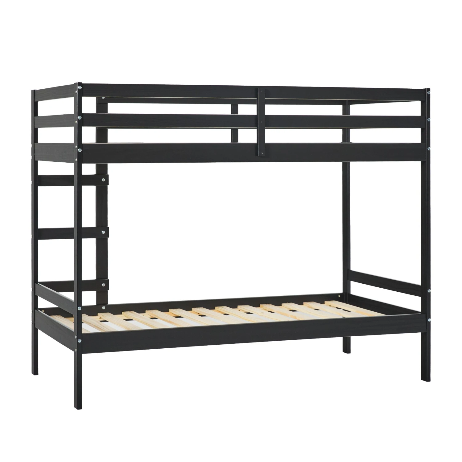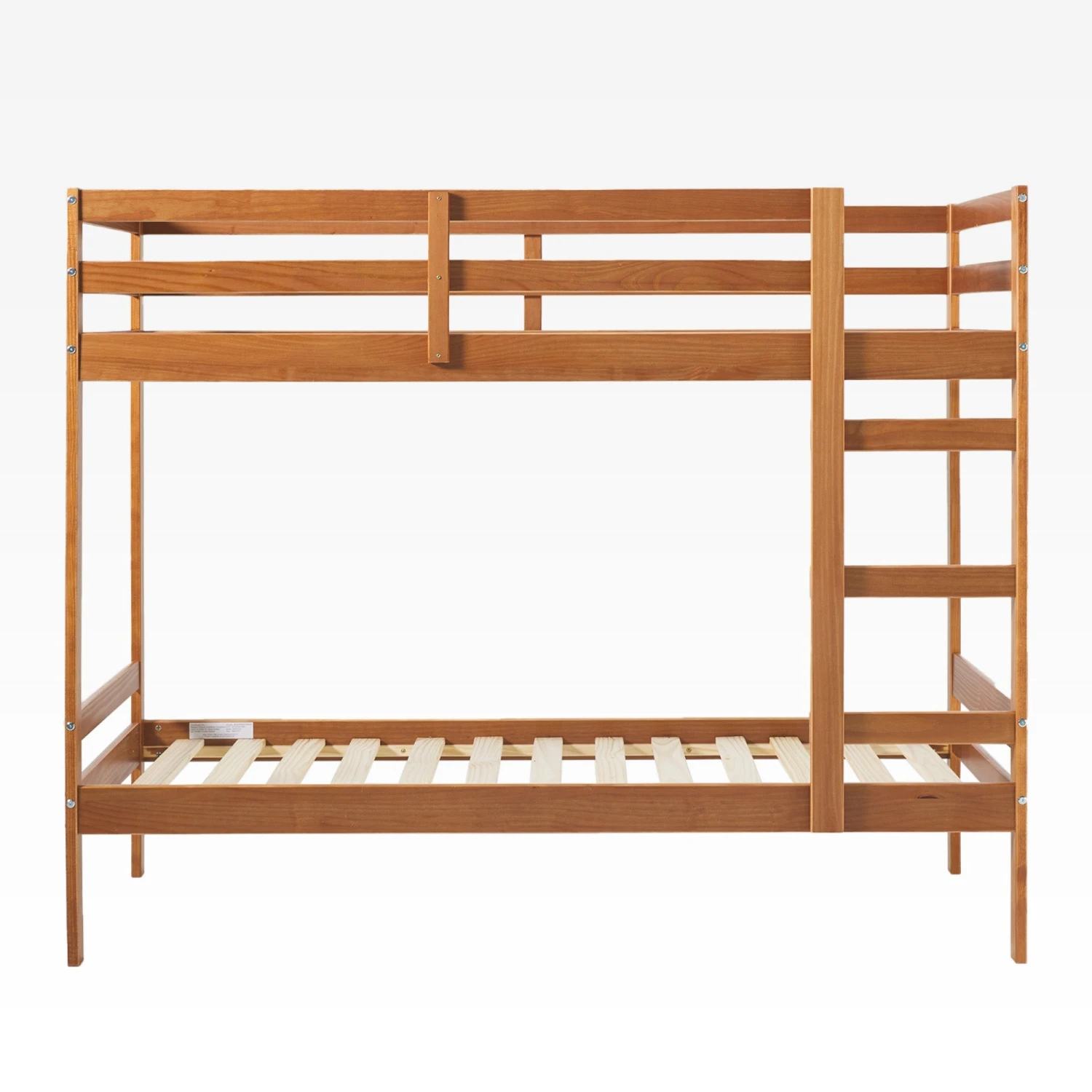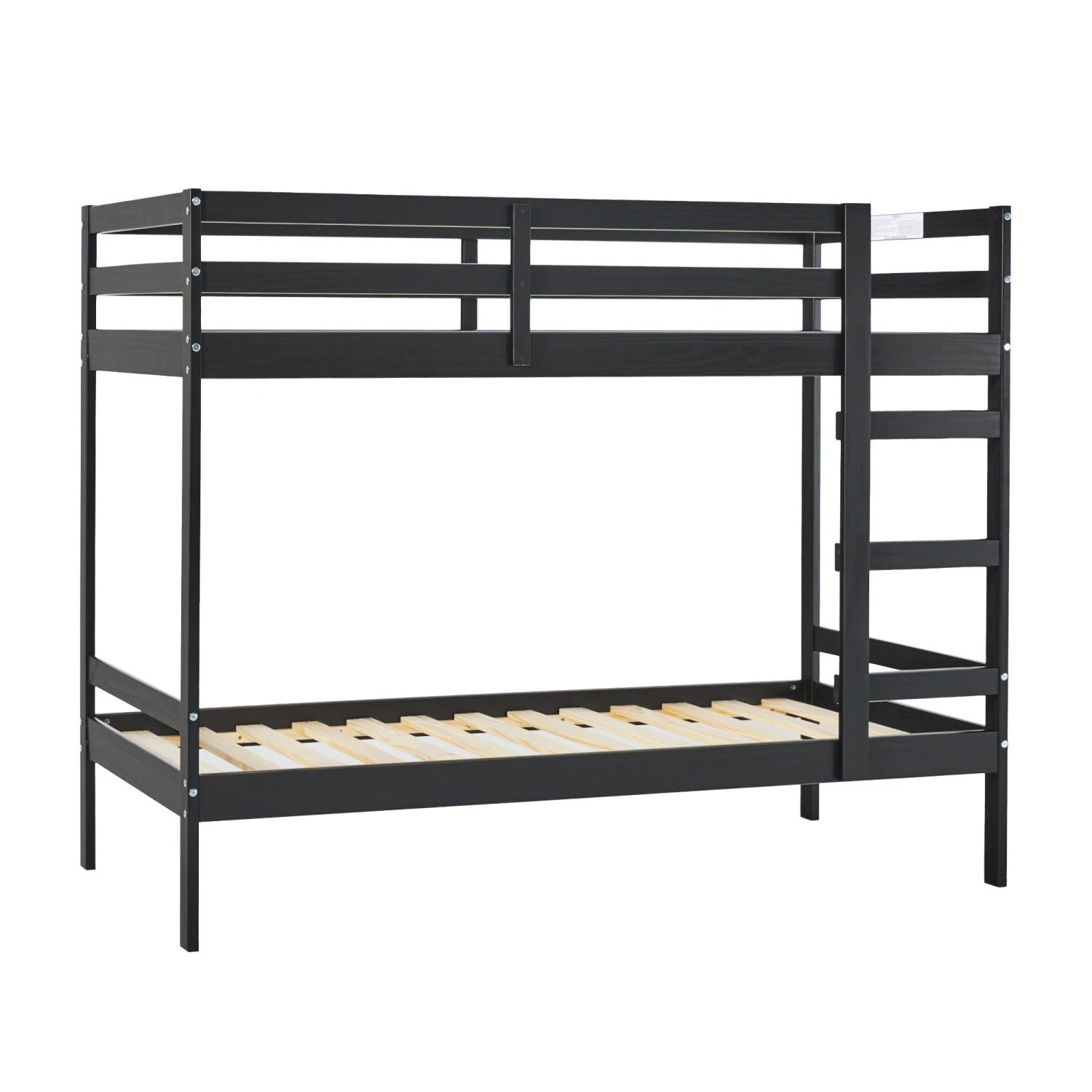 Sweet slumber awaits with this modern, twin-over-twin bunk bed. Ideal for kids’ rooms, bunk rooms, and small spaces, this setup offers maximum comfort, while also saving precious floor space. Rounded ladder rungs ensure comfort while climbing to and from the top bunk, and the pinewood slats and a solid wood bed frame create a more sturdy, durable furniture construction. The high-quality wood finish is beautifully painted, ensuring it will hold up to everyday wear. Kids and adults alike will feel right at home when they cozy up on this versatile, quality bunk bed.